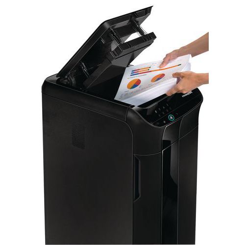 Destruidor Automax 350C/550C – Fellowes, Capacidade de passagem (folhas A4/80 g): 315, Cesto capacidade: 70 L Destruidor Automax 350C/550C – Fellowes, Capacidade de passagem (folhas A4/80 g): 315, Cesto capacidade: 70 L