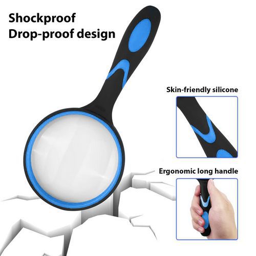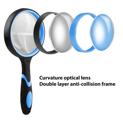Lente de grandes dimensões, campo de visão amplo: a lente gigante de 100 mm oferece um campo de visão mais amplo do que as lentes convencionais, permitindo-lhe ver mais conteúdo e reduzir a fadiga ocular. Ampliação real de 6x, lente em vidro de qualidade ótica grossa e transparente, elevada precisão, resistente ao desgaste e aos riscos. Veja imagens excelentes sem qualquer distorção. A pega é fabricada em borracha antiderrapante: é agradável ao toque, macia e confortável. Além disso, a lente está bem equilibrada de forma a evitar a fadiga do pulso. A estrutura reforçada garante uma excelente estabilidade da lente: não treme nem se mexe.