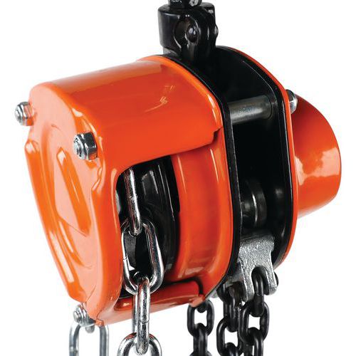 Diferencial de corrente compacto e robusto. Travagem excecional. Elevação fácil em total segurança. Ganchos giratórios em aço liga de aço estampada a preto e equipados com linguetas de segurança forjadas. Correntes de carga de grau 80 e galvanizadas.