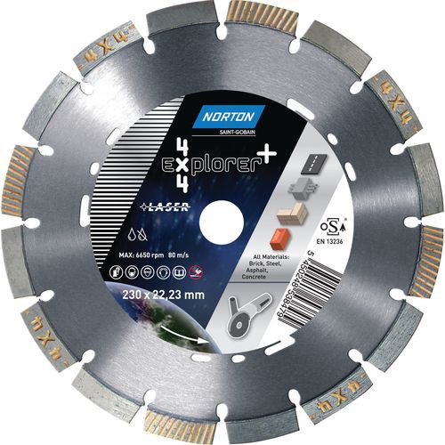 | Nome do artigo | Disco de corte de diamante 4 x 4 Explorer, Cubo Ø: 25.4 mm, Ø: 300 mm, Para material: Betão armado |