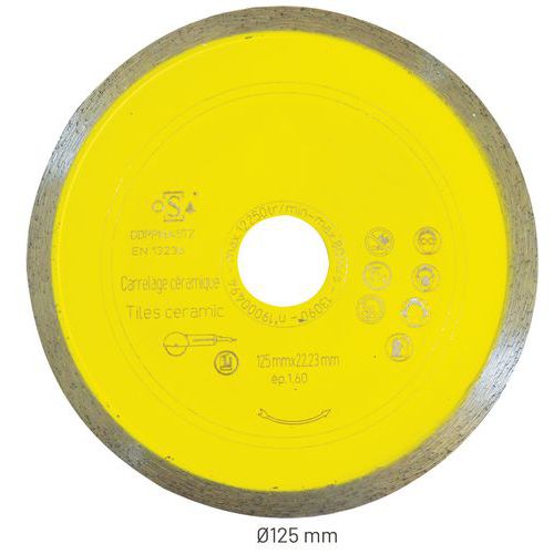 | Nome do artigo | Disco de corte para ladrilho – cerâmica – faiança – Ø 125 mm – Manutan Expert, Cubo Ø: 22.23 mm, Ø: 125 mm |