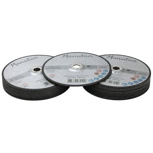 Disco de corte plano para todos os materiais – Manutan – Manutan Expert Disco de corte reforçado para corte ou rebarbamento fino de metais e materiais em máquinas portáteis e fixas. Fabricado com elementos abrasivos e juntas indicadas para obter cortes rápidos e eficazes.