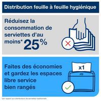 O seu sistema de distribuição folha a folha reduz o consumo em, pelo menos 25 %, em comparação com os distribuidores de guardanapos tradicionais.