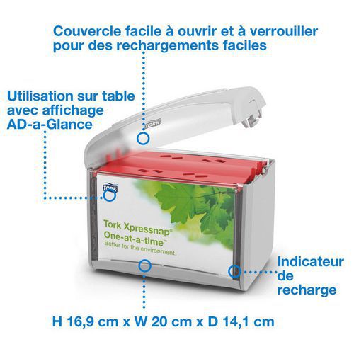 Poupe tempo nas recargas e certifique-se da disponibilidade permanente de guardanapos graças ao indicador de recarga do distribuidor de guardanapos.
