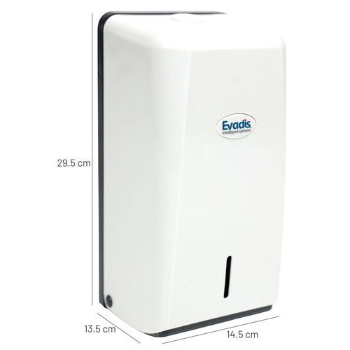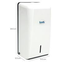 | Nome do artigo | Distribuidor de papel higiénico dobrado, Cores: Branco, Altura: 29.5 cm, Largura: 14.5 cm, Materiais: ABS |