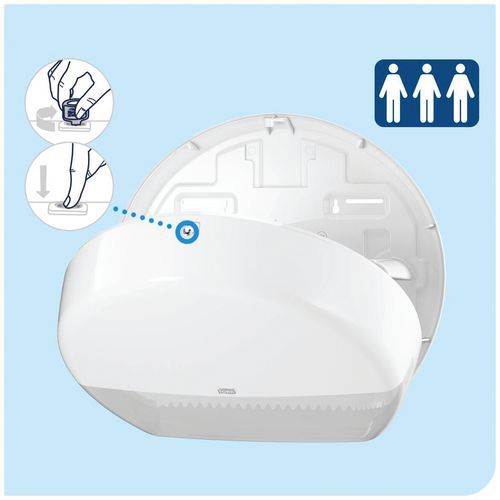 | Nome do artigo | Distribuidor de papel higiénico Tork T1 – Maxi Jumbo, Cores: Branco, Altura: 36.8 cm, Largura: 13.9 cm |