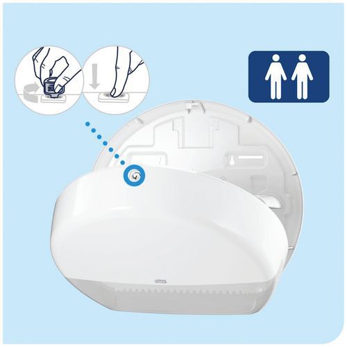 | Nome do artigo | Distribuidor de papel higiénico Tork T2, Cores: Branco, Altura: 28.4 cm, Largura: 13.9 cm |