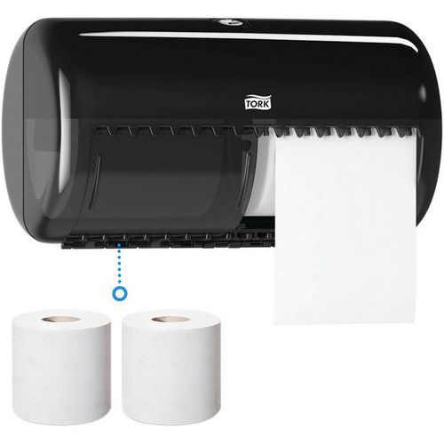 Para todos os rolos de papel higiénico tradicionais. Adequado para dois rolos, o que permite dispor de um rolo de reserva. Igualmente indicado para rolos «Advanced» (extralongos). Fabricado na UE