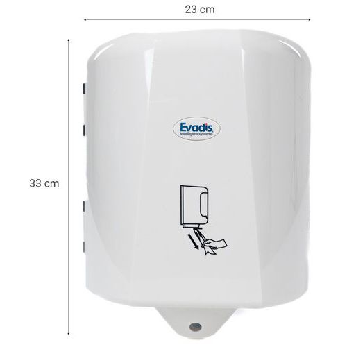 | Nome do artigo | Distribuidor de rolo – MP Hygiène, Cores: Branco, Altura: 23 cm, Largura: 30 cm, Profundidade: 25.5 cm |