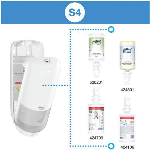 Distribuidor de sabão Tork alumínio S4, Recarga tipo: Cartucho, Comando distribuidor: Botão de pressão