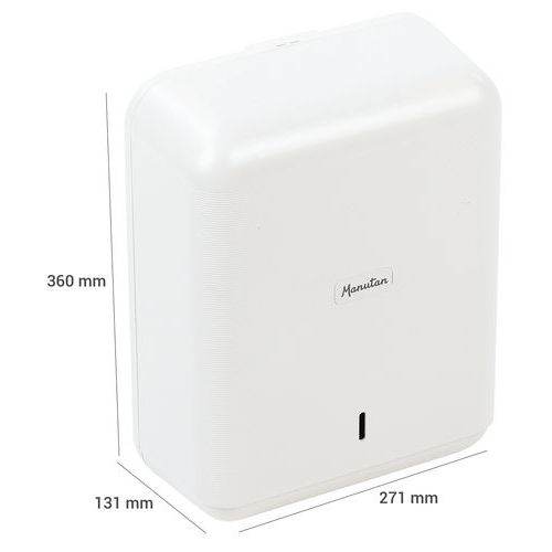 | Nome do artigo | Distribuidor de toalhetes – ABS 100% reciclado, Cores: Branco, Altura: 360 mm, Largura: 271 mm |