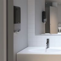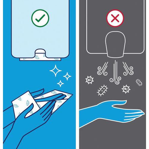 Distribuidor de extração folha a folha Tork Xpress. Maior higiene, sendo que cada utilizador toca no seu próprio toalhete. Recarga rápida: basta abrir com a chave e fechar a tampa para o bloquear.