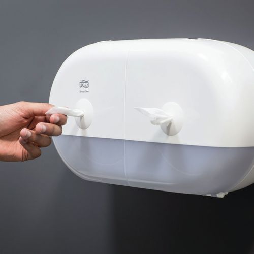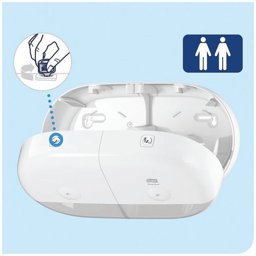 | Nome do artigo | Distribuidor duplo Tork T9 – Papel higiénico SmartOne, Cores: Branco, Altura: 22.1 cm, Largura: 39.8 cm |