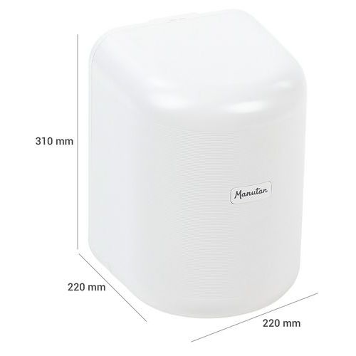 | Nome do artigo | Distribuidor rolo – ABS 100% reciclado, Diâmetro Ø: 220 mm, Cores: Branco, Altura: 310 mm, Largura: 220 mm |