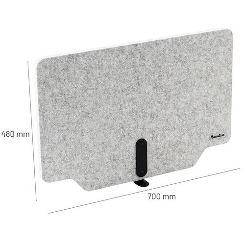 A divisória de secretária de dupla funcionalidade proporciona privacidade e absorção acústica. Divisória de colocação livre sobre a secretária – versatilidade de utilização. Recorte para facilitar a passagem de cabos elétricos. 2 cores elegantes e intemporais com um design de recorte original. Produto sem fixação e leve, muito fácil de deslocar.
