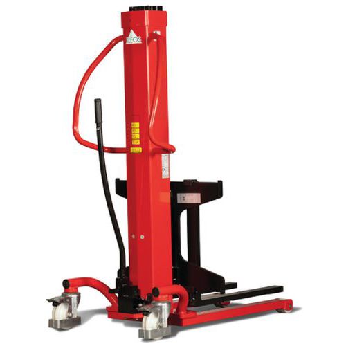 Empilhador manual com elevação hidráulica extremamente compacto, ideal para espaços pequenos.