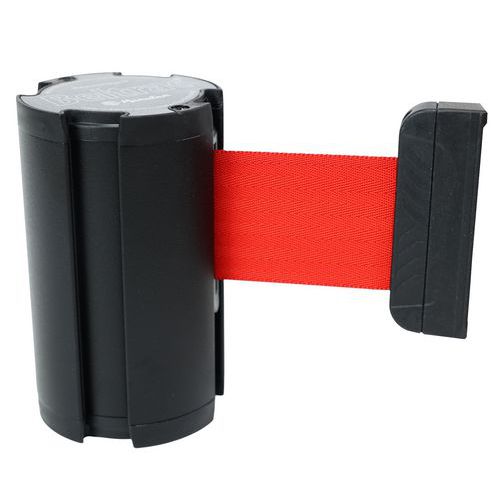 Enrolador de parede com correia para fechar ou impedir o acesso a uma área. Desmontagem com suavidade graças às correias com travão automático. Fixação robusta e fiável da correia. Produto adequado para utilização em espaços exteriores.