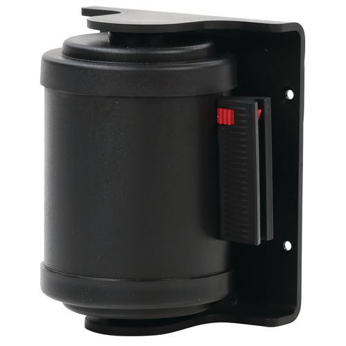 Suporte com correia estirável para fixação direta numa parede graças à fixação mural fornecida. Concebido para proteger contra o acesso de pessoas não autorizadas ou para delimitar filas de espera ou zonas de circulação em armazéns. Cassete rotativa a 180 °.