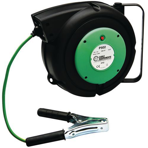 - Enrolador de retorno automático com alicate de ligação à terra.