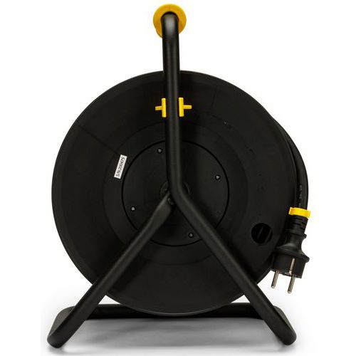 Enrolador profissional com pega ergonómica e prática para utilização com luvas de trabalho. Quadro em aço extremamente resistente. À prova de água IP44, ideal para jardim, bricolagem, estaleiros de construção civil ou trabalhos profissionais. Cabo de 25 m ou 40 m H07RN-F em neopreno 3G 2,5 m㎡. Com disjuntor térmico, botão rotativo de enrolamento. Potência máx. enrolado: 1100 W, desenrolado: 3200 W.