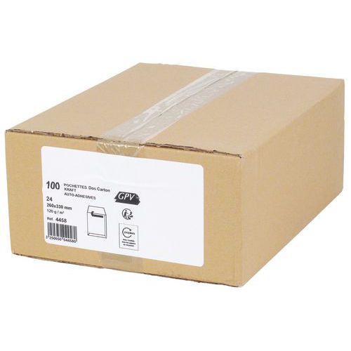 Envelope com verso em cartão kraft castanho de 120 g – caixa de 100