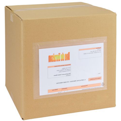 Envelope porta-documentos em plástico e kraft extremamente sólido. Filme da parte de cima em polipropileno superior com tratamento corona de 1 face. Suporte da parte inferior de papel kraft branco de silicone autocolante. Envelope de expedição em massa adesiva Hot Melt sem solventes. Fabricado na UE