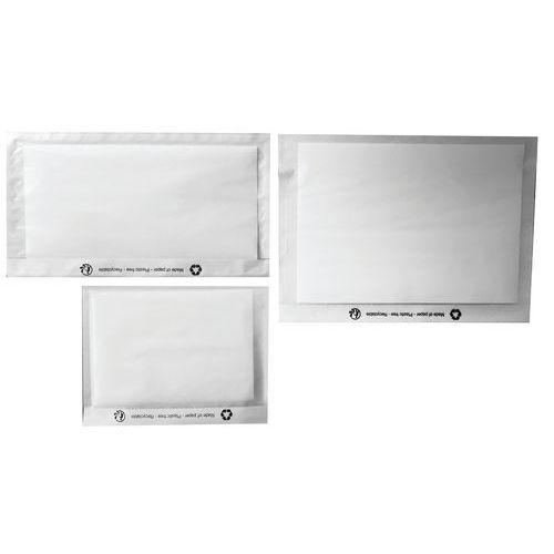 Caixa de 1000 envelopes porta-documentos adesivos e ecológicos, neutros, em papel transparente.