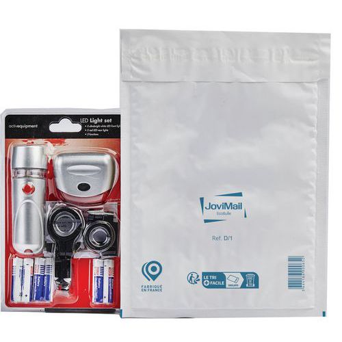 - Envelope Jovimail ecobolha em polietileno branco almofadado com plástico de bolhas.