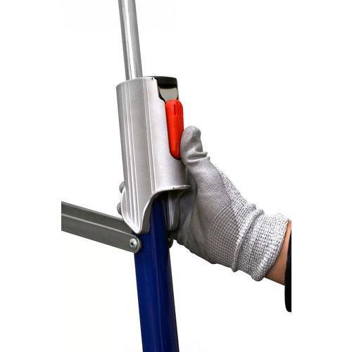 Escada extensível de 3 secções com corda e estabilizadores rebatíveis com regulação milimétrica. Calço amplos articulados com base antiderrapante. Suporte plano para os pés para uma posição estável e confortável. Manuseamento fluido e sem gripagem graças às calhas equipadas com guias em poliamida. Descida controlada da secção extensível: sistema antiqueda em aço com braço duplo, suporta 350 kg. Estabilizadores com regulação milimétrica para se adaptar a todos os tipos de ambientes de trabalho. Pés sempre na horizontal graças à orientação cuidadosamente concebida das barras. Patins amplos e articulados com uma sola com relevo antiderrapante. Carga máx. (kg) : 150 Garantia do cliente : 10 anos