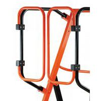 Rodas com mola. Tubo traseiro elevado. Ocupa pouco espaço. Balaustrada de segurança rebatível. Robusta e fácil de deslocar. Dimensões do suporte para ferramentas: Comprimento 450 mm, Largura 80 mm, Altura 25 mm.