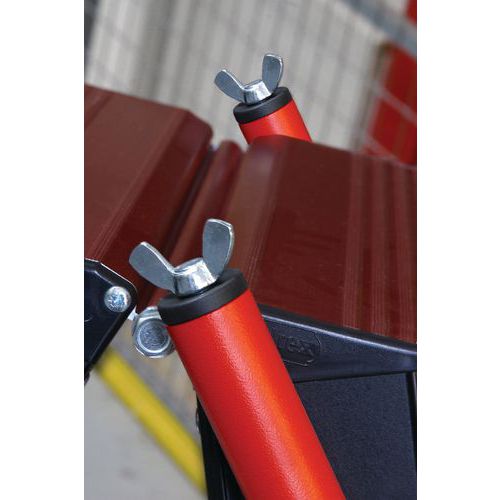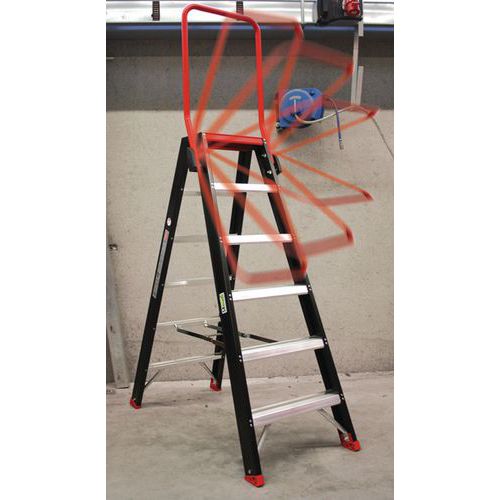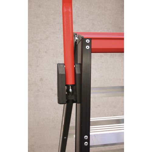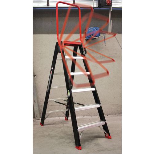 - Fácil transporte e armazenamento com balaustrada de segurança escamoteável.