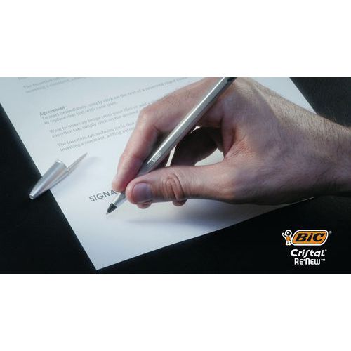A esferográfica Crystal Renew e as suas 2 recargas permitem-lhe escrever por muito tempo.