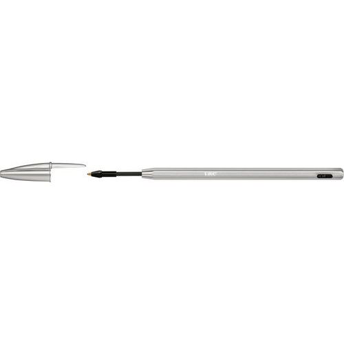 A esferográfica resistente garante uma escrita controlada sem escorregar na mesa, graças à estrutura hexagonal trabalhada em metal.