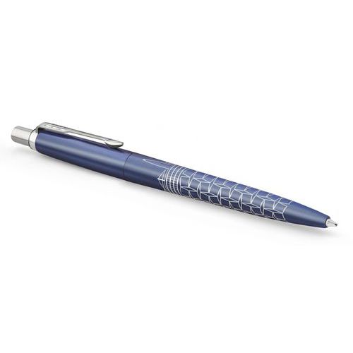 Também compatível com as recargas de gel Parker. Vermelho Londres, indigo Seul, turquesa Miami, azul-acinzentado Paris com acabamento cromado. Ponta média. Tinta azul. Caixa de oferta geométrica.