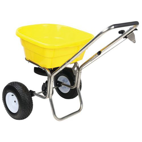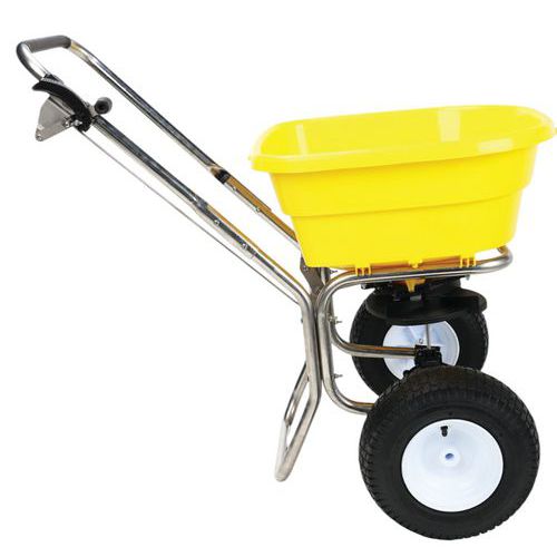 Espalhador que permite distribuir sal, areia ou adubo em superfícies médias. Débito regulável diretamente na pega. Rodas com pneumático com perfil para neve. Utilização universal durante todo o ano. Carga máx. (kg) : 30 Garantia do cliente : 10 anos