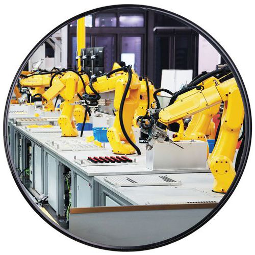 Espelho de vigilância universal, ideal para zonas industriais, saídas de garagem, etc. Fabricado em acrílico, mais resistente a impactos do que o vidro. Excelente reflexão de imagem, sem deformação metalizada aplicada na parte posterior. Resistente a impactos de acordo com a norma DIN ISO 179-1. Certificação TÜV.