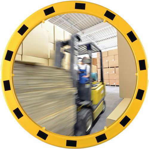 Espelho de vigilância ideal para vigiar as zonas de produção para evitar acidentes e furtos. Visão sem distorção. Fácil de instalar, graças ao suporte de fixação flexível. Resistente a impactos de acordo com a norma DIN ISO 179-1. Certificação TÜV.
