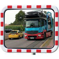 Espelho rodoviário em policarbonato com moldura vermelha/branca – Dan Mirror, Distância de observação: 27 m