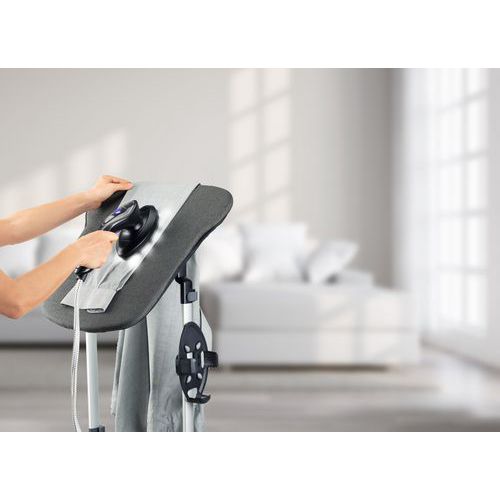 - Concebida com uma escova rotativa para engomar nas posições vertical e horizontal, e com um acessório para peças de roupa extra delicadas.