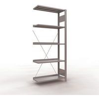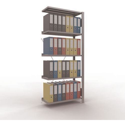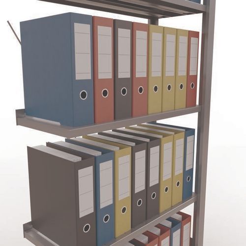 Estante de escritório com acabamento elegante, para cargas leves. As prateleiras integralmente em chapa suportam qualquer tipo de artigo. Montante integral em chapa sem perfuração na face dianteira. Barra de batente para evitar a queda de objetos. Os pés de proteção preservam o piso. Montagem sem ferramentas graças ao sistema de clipe.