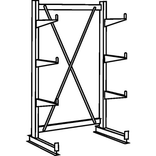 Estante com braços de face simples ou dupla face. Montagem fácil e possibilidade de extensão ilimitadas.