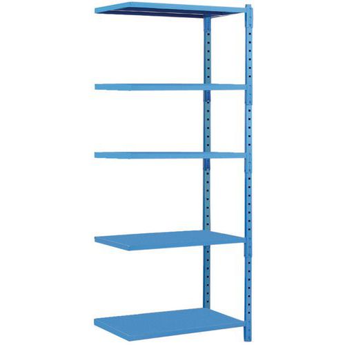 Estante muito estável com elevada capacidade de carga, até 2,5 t. Fácil extensão acrescentando um ou mais elementos adicionais. Com prateleira fechada para impedir a queda de objetos. Estante pesada, fácil de montar e de expandir.