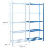 Estante muito estável com elevada capacidade de carga (até 2,5 t). Prateleiras tubulares para garantir uma excelente ventilação dos objetos e uma manutenção fácil. Fácil extensão da estante através da junção de 1 ou mais kits adicionais.