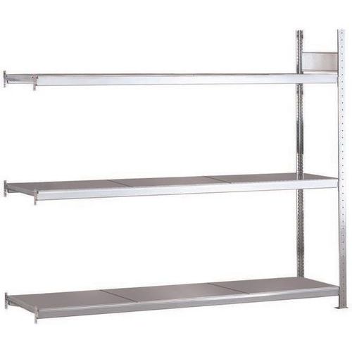 Estante de armazém robusta organizada por níveis em chapa de aço integral. Estável, mesmo sem cruzetas, e acessível de ambos os lados. Totalmente combinada com outras estantes Easy-Fix. Elevada resistência à corrosão, com acabamento em aço galvanizado.