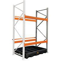 Estante de retenção robusta em aço galvanizado, ideal para recipientes de armazenamento.