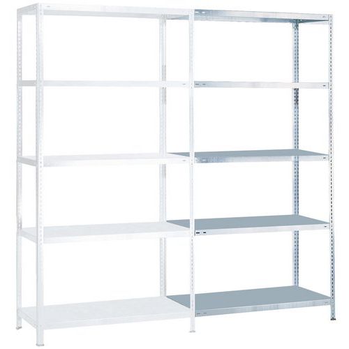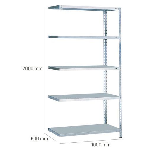 Estante robusta e económica para os seus armazéns e oficinas. Ajustável a qualquer altura, com regulação a cada 25 mm. De fácil extensão, através da junção de 1 ou mais elementos adicionais. Acabamento resistente a impactos em epóxi cinzento ou zincado. Estante de montagem simples e rápida.