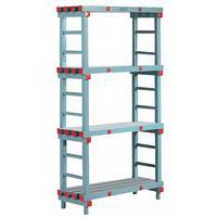 Estante aberta para produtos alimentares: boa circulação do ar. Cantos arredondados para preservação dos produtos armazenados. Fabrico em material sintético extremamente resistente e antichoque. Resiste ao sal e aos ácidos presentes nos produtos alimentares. Fácil de montar sem ferramentas e de manutenção fácil para uma higiene perfeita. Perfis arredondados (50 x 50 mm).
