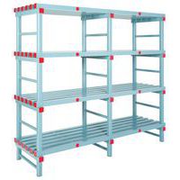 Estante aberta para produtos alimentares: boa circulação do ar. Cantos arredondados para preservação dos produtos armazenados. Fabrico em material sintético extremamente resistente e antichoque. Resiste ao sal e aos ácidos presentes nos produtos alimentares. Fácil de montar sem ferramentas e de manutenção fácil para uma higiene perfeita. Perfis arredondados (50 x 50 mm).