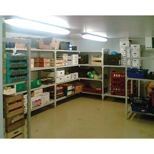 A estante corresponde às exigências de segurança sanitárias dos produtos alimentares. Estrutura robusta com material de cobertura em polipropileno e núcleo em aço. Extensível através do acrescento de um ou mais elementos adicionais, conforme a configuração pretendida. Higiénica, estrutura de limpeza muito fácil. A instalação da estante é rápida e fácil, sem parafusos.