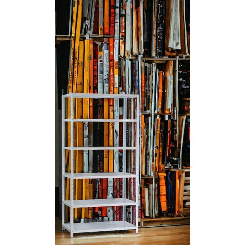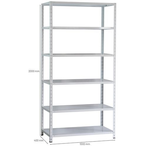 - Estante metálica de aparafusar com 6 prateleiras de altura regulável.